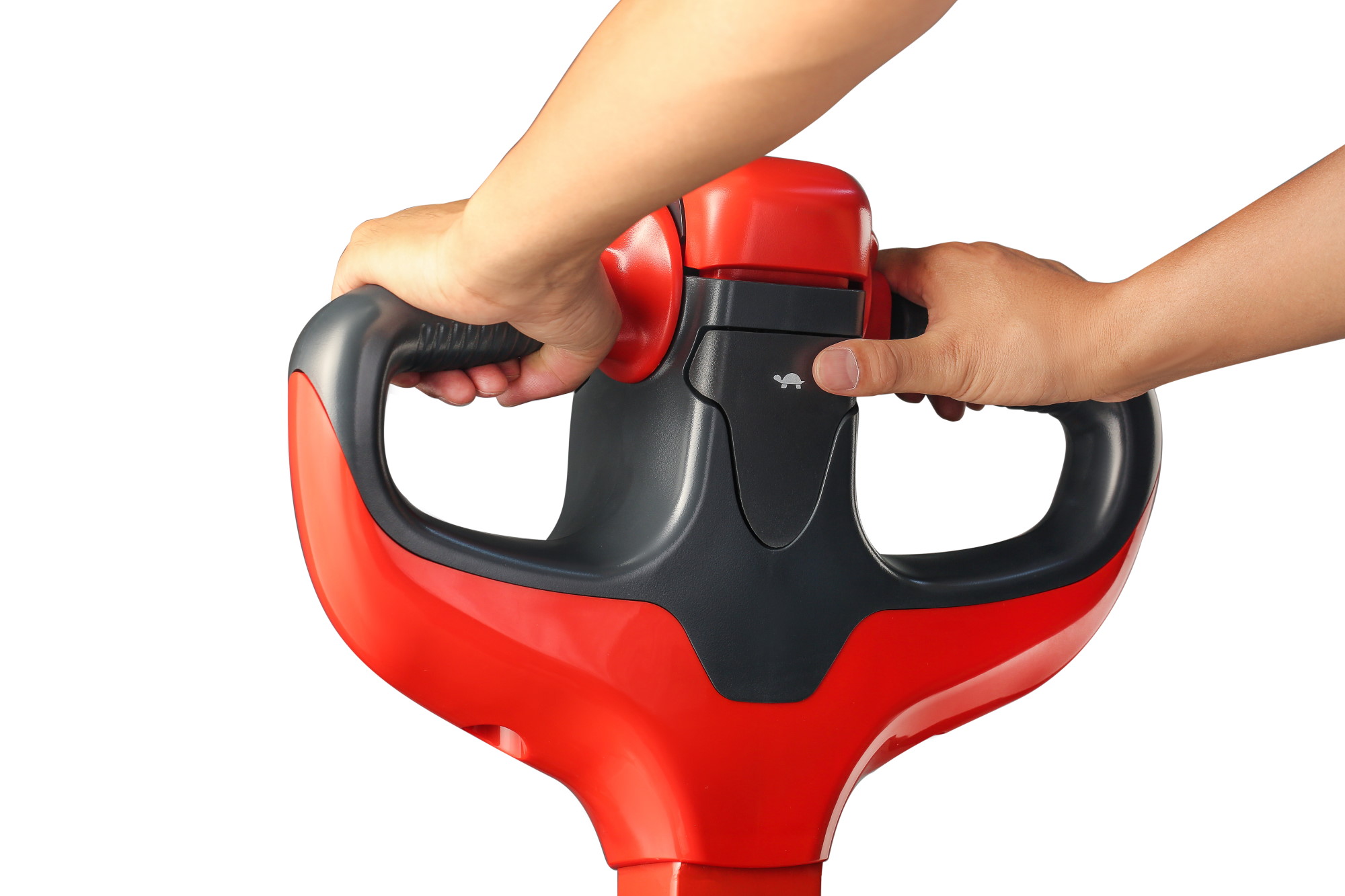 Руків’я управління також було додатково модернізовано для забезпечення високого рівня захисту і комфорту. Округла металева конструкція захищає руки оператора. Перемикачі напрямку руху, кнопки активації початкового підйому, функції малого ходу і звукового сигналу, а також аварійний перемикач розташовані в центрі руків’я для легкого доступу. Конструкція шасі запобігає травмам ніг і пошкодженню вантажних лап. Багатофункціональний дисплей надає інформацію про кількість відпрацьованих мотогодин, терміни технічного обслуговування, рівень заряду батареї і коди помилок.