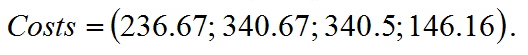 Віднімаючи з довжин радіальних маршрутів (див. (1)) компоненти n-ядра, отримуємо компоненти вектора витрат.
