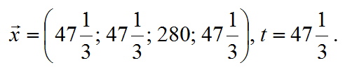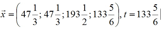 При підстановці рішення в систему неравество в рівності звертаються обмеження, відповідні коаліцій. Зауважимо, що коаліції {1}, {2} і {3,4} утворюють повну групу непересічних множин, тому заморожуємо значення