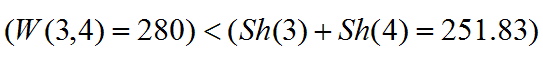 Зауважимо, що в даному випадку В.Ш. не належить ядру. Дійсно, для коаліції {3,4} має місце порушення умови стабільності: